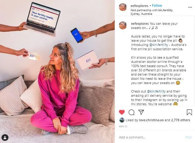 Using our managed service offering, we helped Kin Fertility find & engage suitable female influencers in Australia, and delivered the campaign end to end for them, including providing them with over 50 pieces of high res content that can be re-purposed for online ads and re-marketing.